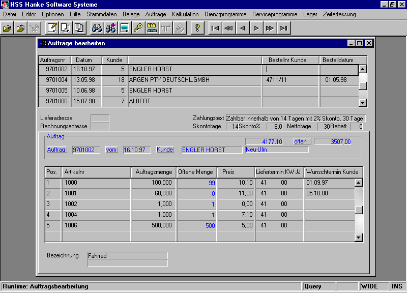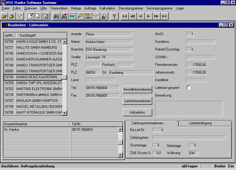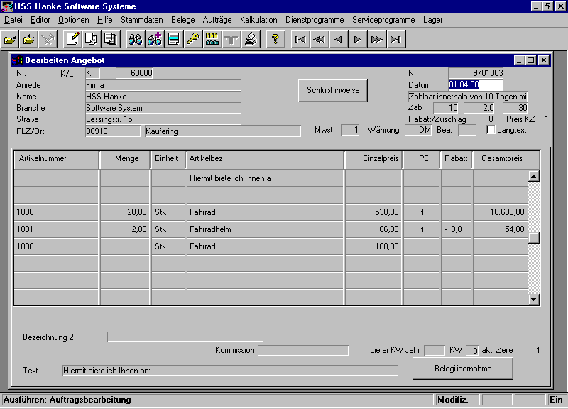 HSS Hanke Software SystemeDie Menüleiste Enthält die Namen der Menüs. Um ein