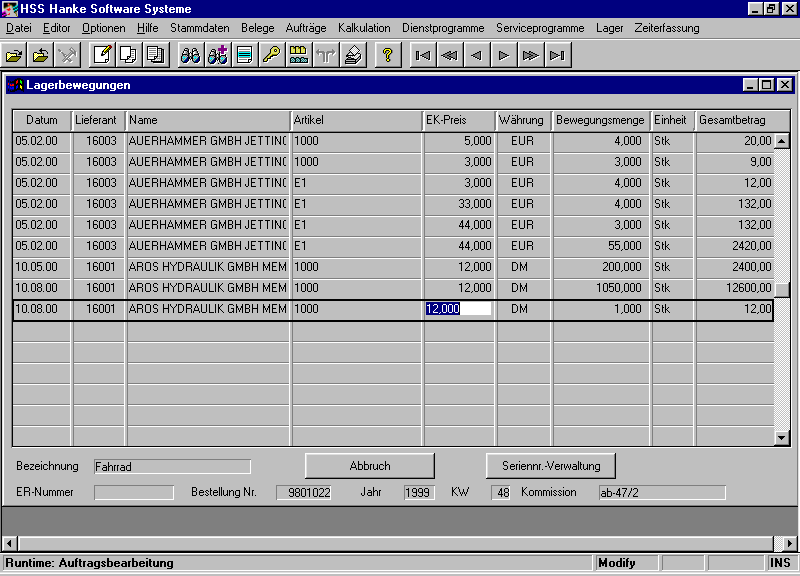 - F3 Löschen einer Zeile im Erstell- oder Modifizier-Modus....