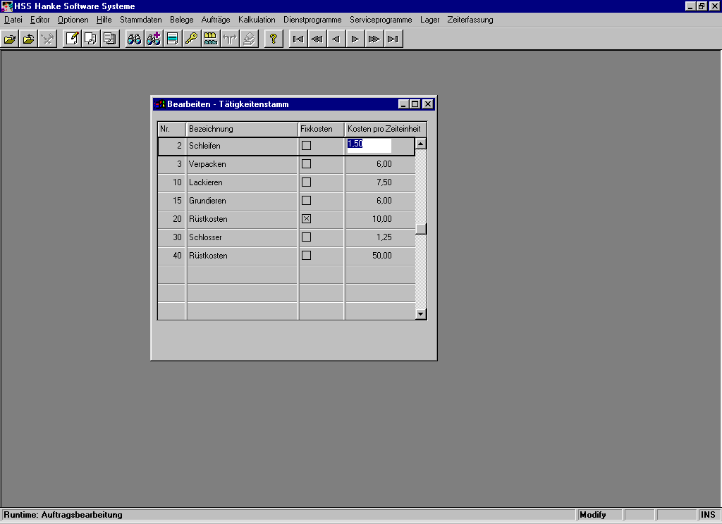 Kalkulation – Bearbeiten Tätigkeitenstamm